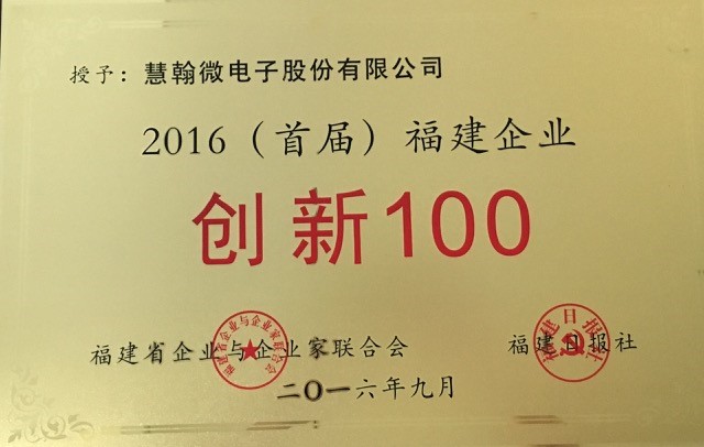 9月21日,慧翰微電子又添新譽(yù),榮獲2016(首屆)福建企業(yè)“創(chuàng)新100”獎(jiǎng)項(xiàng)。