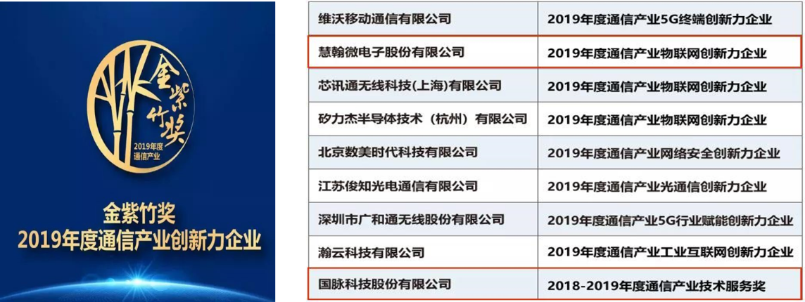 慧翰微電子榮獲“2019年度中國通信產(chǎn)業(yè)金紫竹獎(jiǎng)”