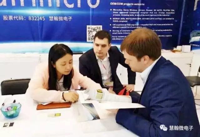 期間,慧翰微電子展區(qū)吸引了眾多來自不同國家的客商,眾多客商對我司展出的低功耗藍牙模組和combo模組等表現(xiàn)出了極大的興趣。