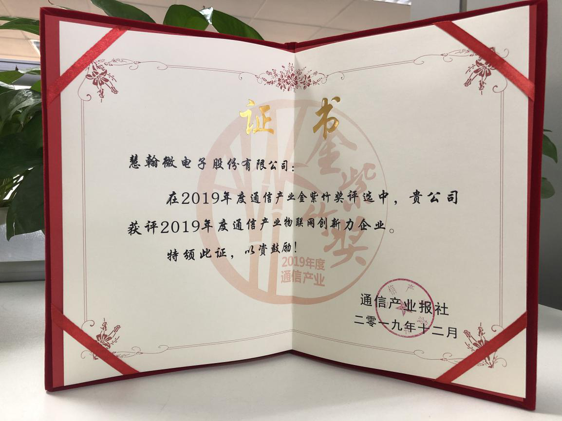 12月31日,2019年度通信產(chǎn)業(yè)金紫竹獎(jiǎng)?wù)浇視?,慧翰微電子榮獲“中國通信產(chǎn)業(yè)金紫竹獎(jiǎng)——物聯(lián)網(wǎng)創(chuàng)新力企業(yè)”榮譽(yù)稱號(hào)。